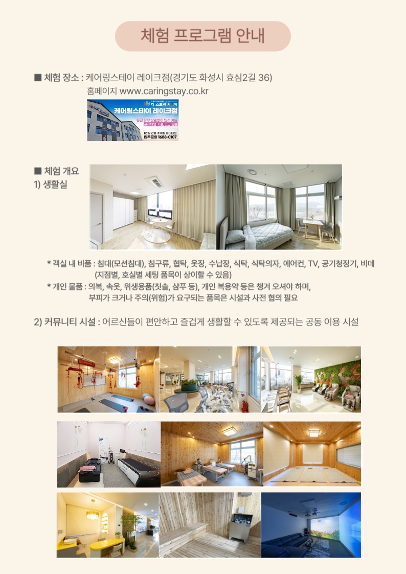 ✔ 부모님께서 실버타운에서 어떻게 지내실지 직접 확인하고 싶으신가요?